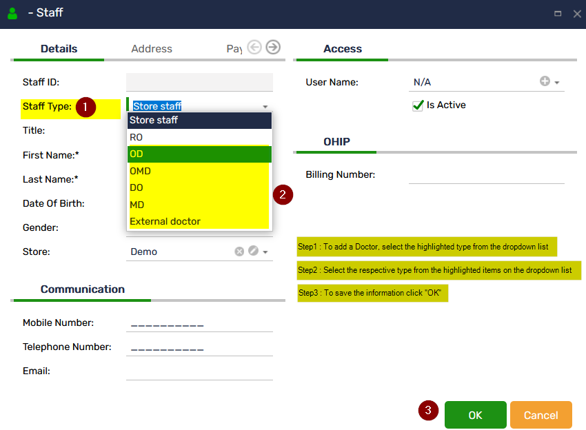 Step 3: Click “OK” to save the doctor details.