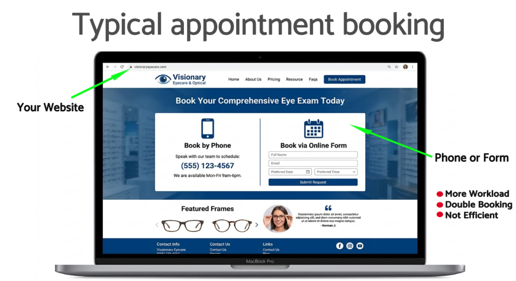 Appointments booked online are automatically reflected in your Optopro system, reducing the risk of double bookings or missed entries.