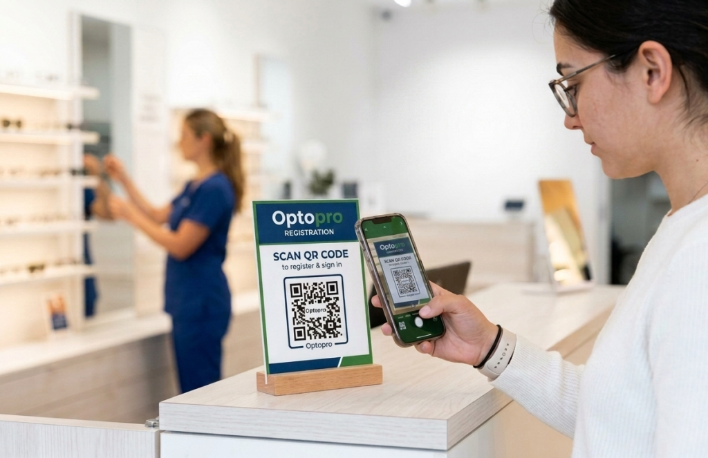 Optopro offers a convenient self-registration option that allows patients to securely enter their information using their own smartphone. This method helps clinics reduce front-desk workload and improve accuracy, as patients input their own information directly.