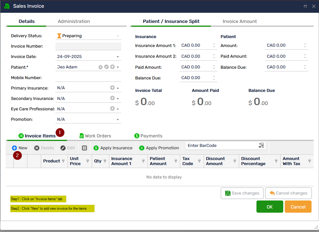 The Sales Invoice in Optopro allows optical stores to efficiently create, manage, and track invoices for all patient purchases, including frames, lenses, contact lenses, accessories, and services. Create sales invoices in just a few clicks. Designed to simplify day-to-day billing operations, this module ensures accuracy, transparency, and seamless integration with inventory, payments, and patient records. Optopro automatically pulls patient details, prescriptions, inventory items, and pricing to minimize manual entry and eliminate errors.